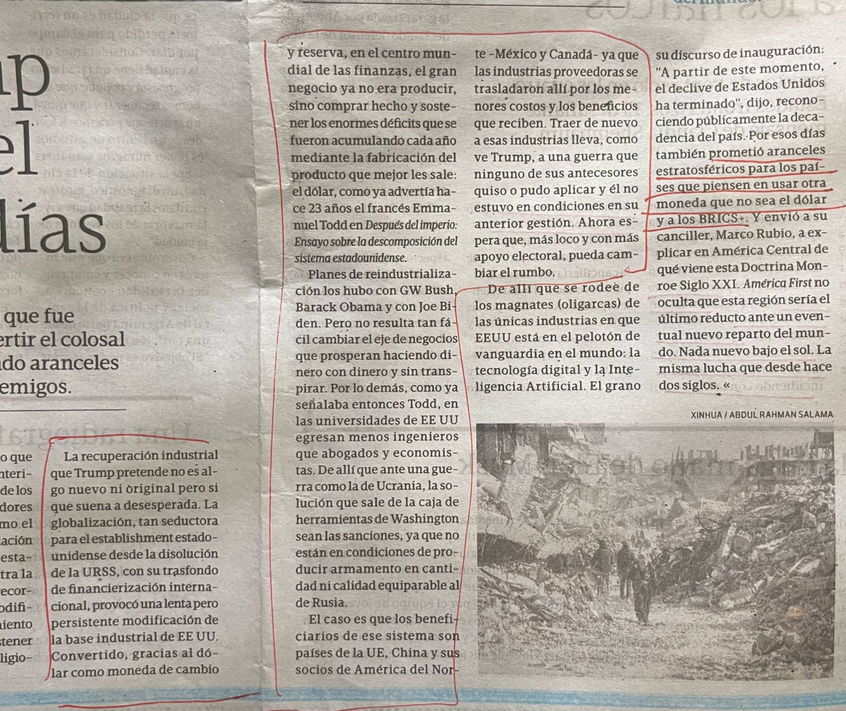 Quien sí tiene rumbo es Trump. La meta es bajar el déficit. Este diario viejo, del 9/2/2025 explicaba claramente cuáles eran los trazos gruesos de los primeros 100 días del gobierno americano:
