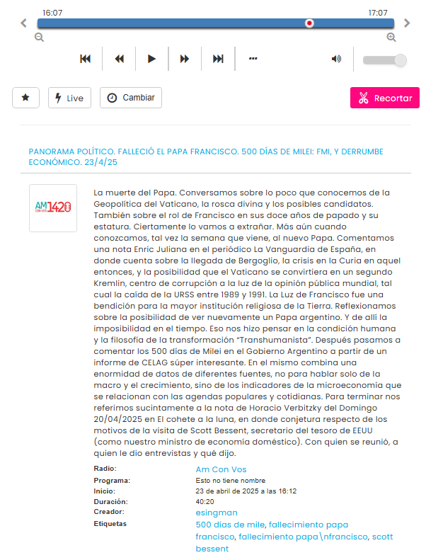 También sobre el rol de Francisco en sus doce años de papado y su estatura. Ciertamente lo vamos a extrañar. Mas aún cuando conozcamos, tal vez la semana que viene, al nuevo Papa.