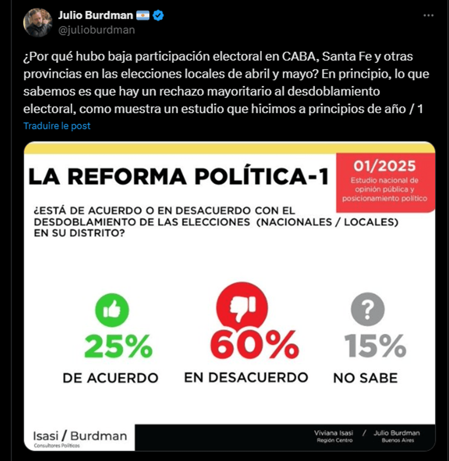 No hay una cultura política, ni en CABA ni en PBA, para desdoblamiento. En Pcias tienen otra lógica porque BsAs es el centralismo. Y hay rechazo.