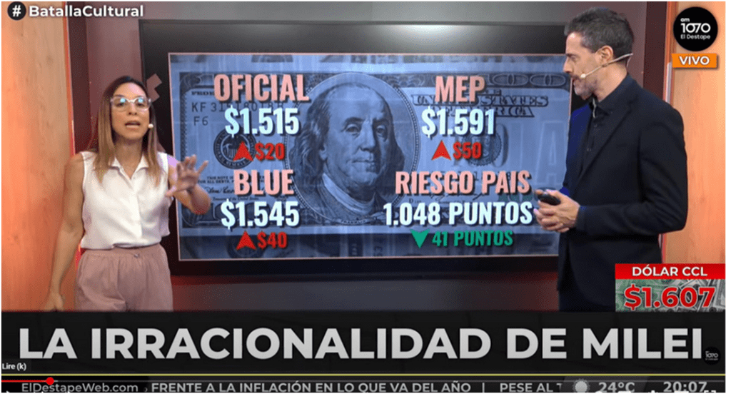 Destacamos la inédita intervención de EEUU en la macro, en la compra de presos y la inyección de dólares. Y el aumento del valor de la divisa.