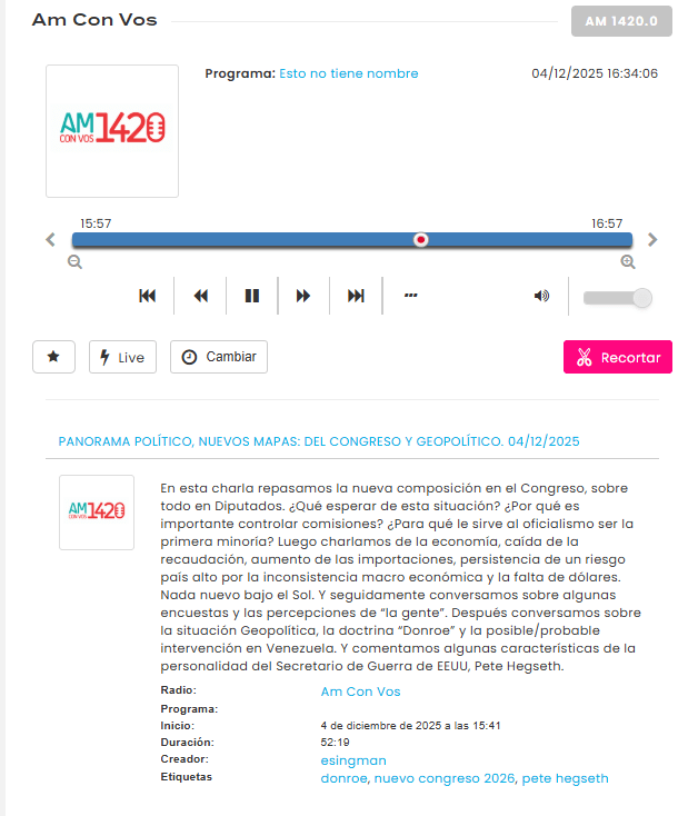 Después conversamos sobre la situación Geopolítica, la doctrina “Donroe” y la posible/probable intervención en Venezuela. Y comentamos algunas características de la personalidad del Secretario de Guerra de EEUU, Pete Hegseth.