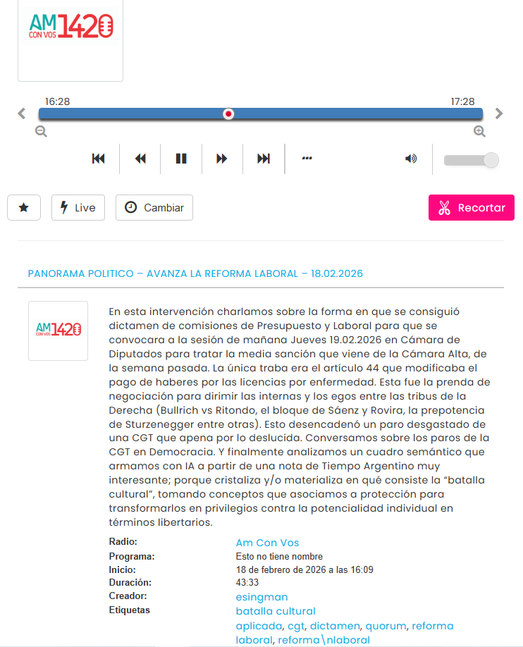 En esta intervención charlamos sobre la forma en que se consiguió dictamen de comisiones de Presupuesto y Laboral para que se convocara a la sesión de mañana Jueves 19.02.2026 en Cámara de Diputados para tratar la media sanción que viene de la Cámara Alta, de la semana pasada.